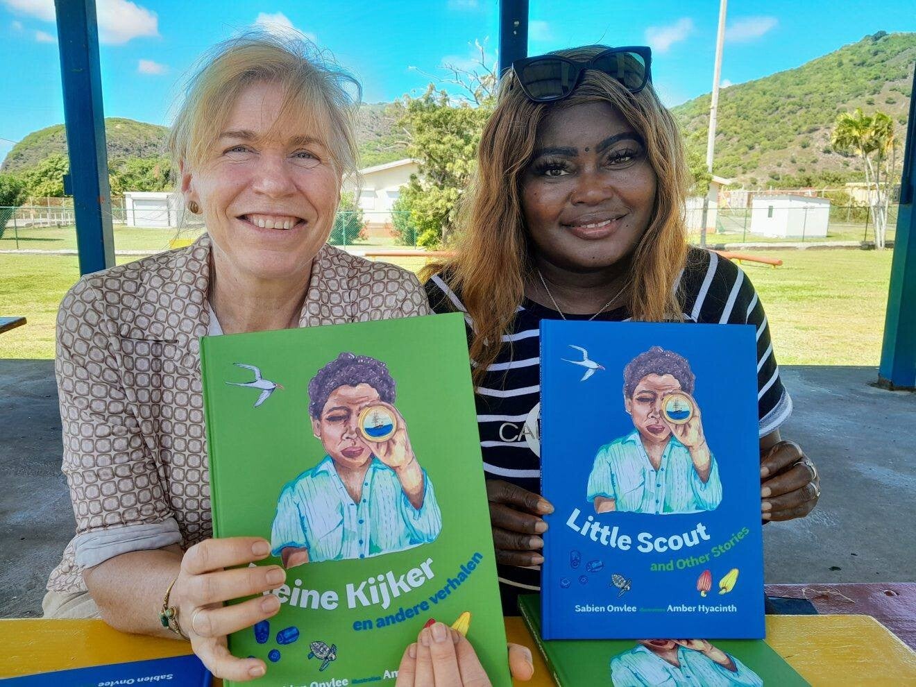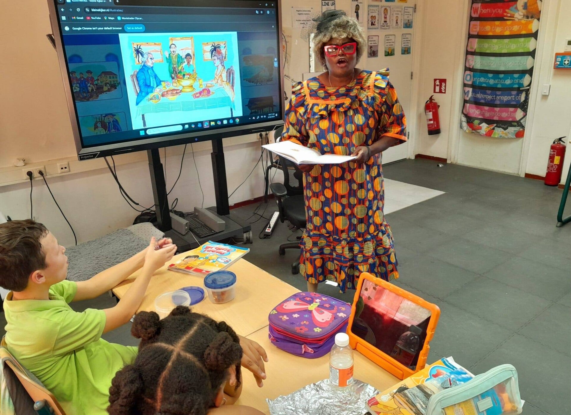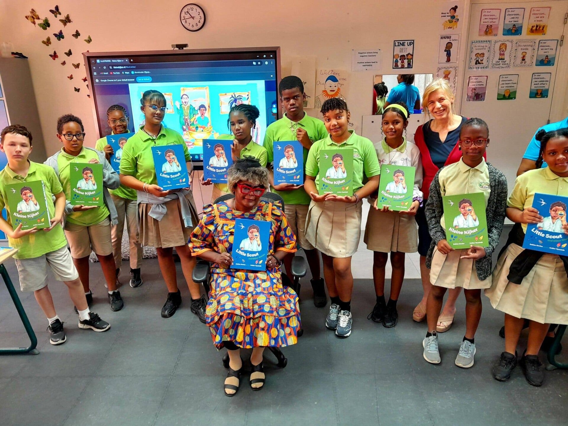 Reading is high on our list. We also have visitors who come by to read a book aloud. During the Bookweek this year we had a lot of visitors doing this. visitors like teacher Judith who is the teacher for Dutch at the secondary school on our island.